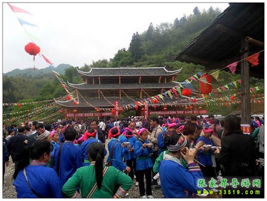 二、訪苗山:徒步經(jīng)峽谷上對歌臺,登龍脊山百步石頭天梯,觀奇異風(fēng)水“三龍奪寶”,賞龍鱗樹“九龍迎賓”,攔門酒、攔門歌、攔門鼓,參觀苗寨人家,在山崖邊的“情人坡”樹蔭下納涼,觀數(shù)人合抱的“九世古樹”、草帽大的“靈芝”,參與互動(dòng)的民俗表演。苗家中餐(農(nóng)家飯,迎客酒)后游神龍峽,走在鄉(xiāng)間的小路上,小溪、田埂,別有一番趣味,乘船返長潭崗。