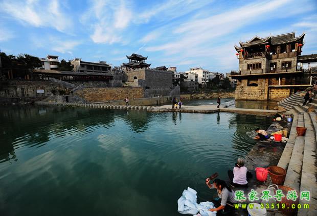 乾州古城城池小巧玲瓏,石城墻垣逶迤回環(huán)1980m,高5m,方溶江穿城而過,沿江古街上被歷代行人的腳磨得光亮的青石板,既自然又精巧地鑲嵌著,沿街建有苗族特有的民宅——吊腳樓,具有濃郁的民族風(fēng)格。