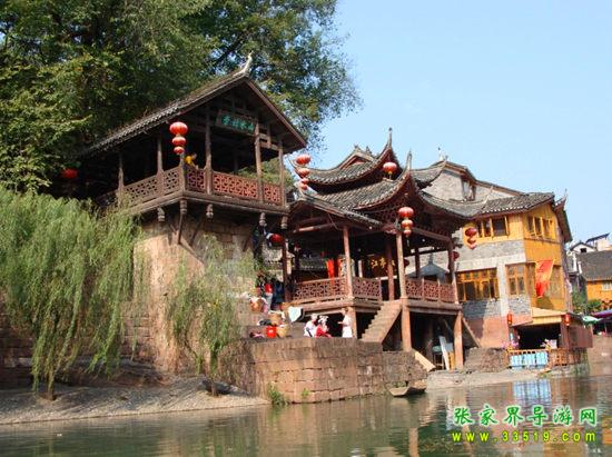 芙蓉鎮(zhèn)不僅是一個(gè)具有悠久歷史的千年古鎮(zhèn),也是融自然景色與古樸的民族風(fēng)情為一體的旅游勝地,又是猛洞河風(fēng)景區(qū)的門戶、一個(gè)尋幽訪古的最佳景點(diǎn)。四周是青山綠水,鎮(zhèn)區(qū)內(nèi)是曲折幽深的大街小巷,臨水依依的土家吊腳木樓以及青石板鋪就的五里長街,處處透析著淳厚古樸的土家族民風(fēng)民俗,讓游人至此贊不絕口,留連忘返。胡績偉先生游覽猛洞河和王村以后作詞贊道:“武陵山秀水幽幽,三峽落溪州。懸崖壁峭綠油油,悠悠蕩華舟。烹鮮魚,戲靈猴,龍洞神仙游,芙蓉古鎮(zhèn)吊腳樓,土家情意稠。”