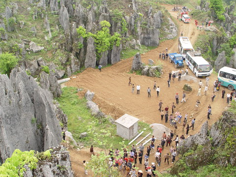 登上洛塔,只見連山綿谷,萬石如林,一塊塊青灰色的大石頭競高競秀,競美競奇,綿亙縱橫,層疊交錯,造型奇特,塔狀、蓮臺狀、羅漢狀、錐狀、刀狀、箭簇狀、帷幕狀等林立薈萃,像一個個神奇的迷宮,組成洛塔地質(zhì)公園的旖旎景觀。有的玲瓏斫剔,若女繡工鐫;有的嶙峋怪異,如鬼斧神鑿;有的崢嶸巉峻,似水墨丹青;有的嵯峨兀立,藤蔓纏繞,更像一株株挺拔的古樹。高的、矮的、大的,細的。粗、瘦、皺、滑,各具特色,如人之面目相具而無一相似者,在綠樹紅花間亮麗起一道道迷人的風(fēng)景。洛塔石林遍及整個山界,較集中的有楠竹車水坪石林、梭洛趙家灣石林、八仙洞石林及公路沿線的銀河塔石林,僅車水坪一帶的石林面積就達1000多畝。無論其規(guī)模面積,造型及組合情況,洛塔石林都可與云南石林媲美。