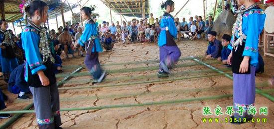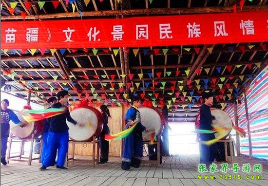 夢幻苗疆進寨必須經(jīng)過苗族人民接待遠(yuǎn)方賓客的歡迎儀式“攔門三卡” 唱攔門歌、喝攔門酒、敲苗家花鼓,通過后,方能進寨。