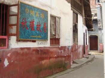 秋瑾故居位于湘潭市十八總由義巷。這位近代史上杰出的巾國(guó)英雄、婦女解放運(yùn)動(dòng)的先驅(qū),在這里度過(guò)了8個(gè)春秋。離大碼頭不遠(yuǎn)處有一條寬敞的小巷叫由義巷,巷兩旁墻高院深,大多是官紳富商之家,也開(kāi)設(shè)了幾家當(dāng)鋪、錢(qián)莊。進(jìn)巷口十多丈遠(yuǎn)處,有一棟青磚青瓦麻石門(mén)樓的鋪面,大門(mén)上首有一塊漢白玉石刻招牌“義源當(dāng)”,這是湘潭有名的義源當(dāng)鋪。
