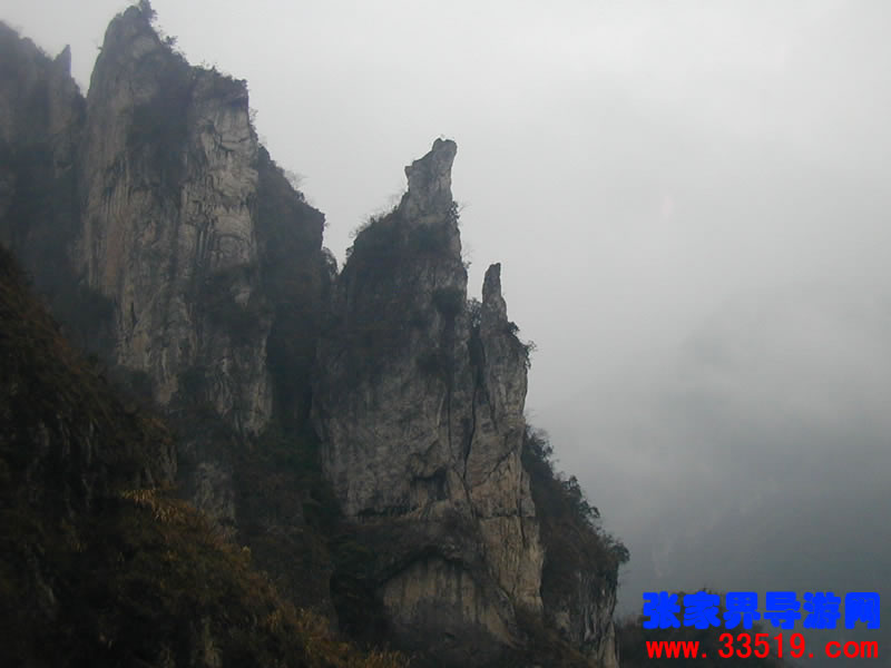 南天門——沿著河水一直往里走,在溪水最深處,可以仰望那隱藏在云霧里的南天門。它并不同于天門山的天門洞。它獨立于眾山之中,就像真正的通天大門,當你翻過了前面的天門洞,卻還要再通過這座南天門,方可真正羽化登仙。南天門旁邊的幾座山峰,也都生的奇形怪狀,倒也天然形成了一個個大大小小的自然景觀。宛如天兵天將般守衛(wèi)南天門的將軍巖,象征南天門仙家氣息的蠟燭峰等,散落在四周,構成了一個整體的山體奇觀。