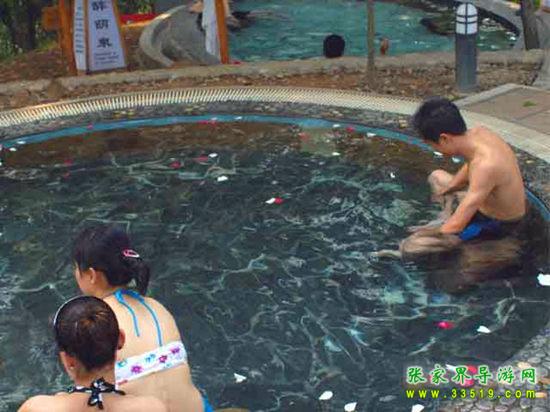 醉蔭泉:水溫39-41度,此泉為林中池,就象一片樹葉飄落在林中,身在此泉:充分領(lǐng)略回歸自然的感覺。