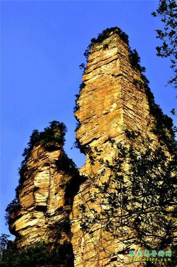 山谷中并排而立的三支山峰,有模有樣,有人叫他們“師徒取經(jīng)”,說那是唐僧、孫悟空、沙和尚三人的“合影”??催^《西游記》的朋友,可能對這片風(fēng)景有似曾相識的感覺,這兒曾是中央電視臺拍攝《西游記》的外景地。有些客人經(jīng)常問,重要人物豬八戒先生怎么沒有趕上這個“合影”呢?他忙里偷閑,在后面背媳婦去了(我們剛才不是看過“豬八戒背媳婦”那個景點嗎?)不小心誤了時辰。如此看來,愛情和事業(yè)有時難免會有點矛盾。