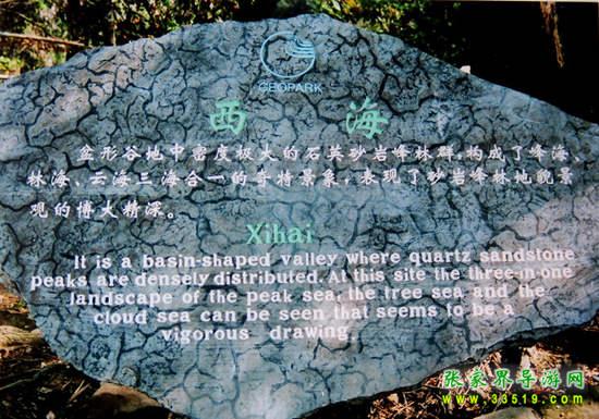 西海位于張家界索溪峪西北,是一個群山環(huán)抱、深不可測的“桶”形盤谷,有上千座石峰竹筍般密密麻麻插在不到幾平方公里的深川大峽之中,秀麗而神奇。春夏或秋初雨后初晴,則云如浪濤,翻涌奔瀉,鋪天蓋地,極為壯觀,是為“云海”。“三海合一”就是西海的特色。其中通天門、天臺為絕景。