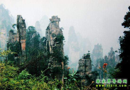 數(shù)以千計的奇峰怪石拔地而起森列谷中。在建筑師看來,石峰如塔、如柱、如屏、如樓、如堡、如墻,鱗次節(jié)比、錯落有致,展現(xiàn)了一幅宏偉的建筑藍圖;在藝術(shù)家看來,石峰似人、似佛、似鳥、似獸、似花、似樹,似瓊樓玉宇,生動逼真唯妙唯肖,似一幅彩色的畫卷;在軍事家看來,石峰是將、是兵,是鼓、是旗、是車、是馬,威武雄壯嚴陣待發(fā),象一支天降的軍隊。