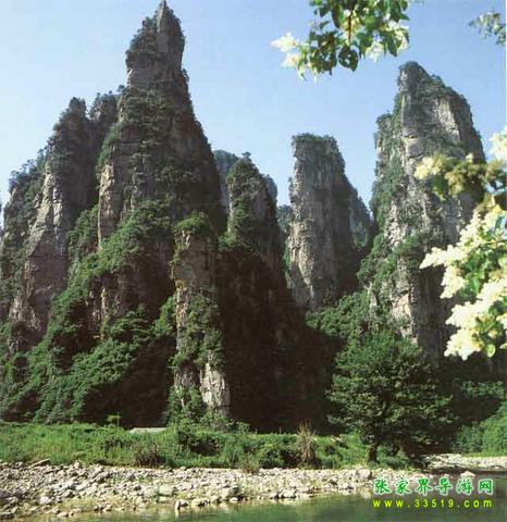 水繞四門(mén)是一塊風(fēng)水寶地,相傳漢留侯張良就葬在門(mén)水繞得佳城;香爐巖上舊上堡,漢代留侯張良?jí)灐?992年5月,聯(lián)合國(guó)教科文組織派來(lái)考察的兩位官員,走完金鞭溪,一路上極少講話的桑塞爾博士終于講話了,他說(shuō):清澈的溪水,完好的植被,這么長(zhǎng)的地段沒(méi) 有人煙,這在亞洲是少見(jiàn)的! 水繞四門(mén)呈輻射狀與各景區(qū)、景點(diǎn)相連。往右可乘車經(jīng)龍尾巴村去張家界公園或下山進(jìn)城;往前可乘車去十里畫(huà)廊,去天子山索道站,去軍地坪、黃龍洞和寶峰湖;往左乘電梯可游袁家界,然后去天子山。