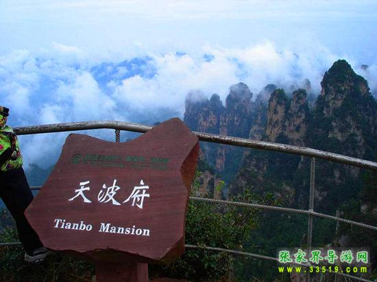 天波府位于楊家界景區(qū),數(shù)十座絕壁,交纏錯落,參差不齊,場面悲壯,若殘?jiān)珨鄩?,令人不由感嘆大自然的威力及滄海桑田的變幻。相傳此乃楊家“天波府”的遺址。據(jù)山西大學(xué)歷史系副教授周征松考證,景區(qū)名稱楊家界(還有上面提到的“天波府”、“宗保峰”、“六郎灣”等)都是為紀(jì)念楊家將而命名的。住在這楊家界的楊氏宗族,原來都是歷史楊家將的后代,由北到南,由江西到湖南、到湘西并經(jīng)過歷代演變,遷移跋涉而來的。