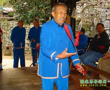 三棒鼓,唐代稱三仗鼓,明沈行符《顧曲雜言》 曰:“吳下何來(lái)有打三棒鼓乞錢者,余幼時(shí)有見之也, 起于唐咸通中(公元865年)”約于明代傳入本境, 并逐漸成為群眾增聞樂見的民間藝術(shù)形式。每年春節(jié) ,藝人們結(jié)伴走村竄寨拜年,表演對(duì)象不分貧富,戶 戶必到。如遇貧寒之家,表演者將別家贈(zèng)送禮品相送 ,意在人人過節(jié)歡喜。充分體現(xiàn)出土家族人熱情好客 ,心地善良的民族性格,對(duì)加強(qiáng)民族團(tuán)結(jié)有一定作用 。 三棒鼓通常由三至五人組成,一人擊鼓唱詞,一 人鑼鈸配樂,一人耍花棒。花棒三根,長(zhǎng)一尺,舞者 左右手各持一根,將另一根拋在空中,左右開弓,擊 打空中花棒使之不落地。也有以刀代棒,以五刀代三 棒的技藝。技藝高強(qiáng)者,突然把刀拋得極高,來(lái)一個(gè) 眼花繚亂,不禁稱絕。打三棒鼓,通常有“鬧春耕” 、“收割打場(chǎng)”、“慶豐收”、“拜年節(jié)”四套,分 “鯉魚跳龍門”、“玉女穿梭”、“板巖漂灘”等項(xiàng) 目。打三棒鼓技巧性強(qiáng),表演時(shí)需高度集中,用力適 當(dāng),貫通一氣,并與演唱者默默配合。