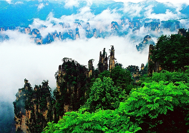 | 上 午: | 游覽“擴(kuò)大的盆景,縮小的仙境”有峰林之王稱號(hào)的---【天子山景區(qū)】:“誰(shuí)人識(shí)得天子面,歸來(lái)不看天下山”,可見(jiàn)天子山風(fēng)光旖旎,景色秀美,景點(diǎn)眾多,仙女散花、御筆峰、天子閣、西海峰林、云巖等景點(diǎn),【賀龍公園】:十大元帥之一的——賀龍銅像,還可登上天子山最高點(diǎn)天子閣,遠(yuǎn)眺天子山全景。然后下山(下山有兩種方式:其一:可徒步兩小時(shí)經(jīng)臥龍嶺下行至山下。其二:也可在天子山索道上站乘坐索道下山), |