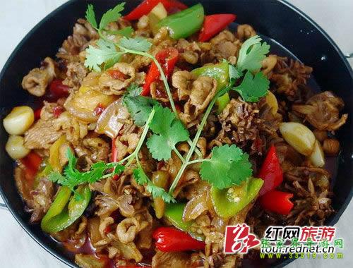 走在張家辦的大街小巷,幾乎沒有哪家餐館不張貼三下鍋的廣告,甚至好多餐館就是以“××三下鍋”來命名。于是,到過張家界的游客,即使沒有親自 品嘗過,也會對當(dāng)?shù)氐?ldquo;三下鍋”充滿好奇。其實,據(jù)說最初的張家界三下鍋是以臘肉、豆腐、蘿卜三道食材為原料的,也因此而得名。不過,經(jīng)過這么多年發(fā)展, 如今的三下鍋早已面目一新,成為了純粹的火鍋,而且往往是配辣得生猛的湯料?;蛟S正是這個原因,更加深了游客們對張家界三下鍋的印象。