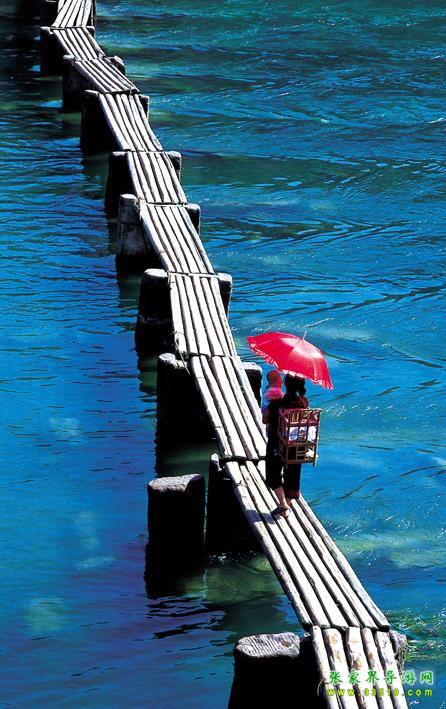 還有那鳳凰人在江邊用木板洗衣服時(shí)的情形也是難忘的。小住幾天,都會(huì)發(fā)現(xiàn)從一早到一晚都有當(dāng)?shù)氐木用裨阢吷舷匆路?,他們?nèi)巳硕寄靡豢焯刂颇景?,用?lái)敲打衣服,特別在早上八、九點(diǎn)的時(shí)候,江兩岸的邊上、木橋的兩邊橋墩下,都蹲滿(mǎn)許多的人,當(dāng)然婦女、老人居多,在那“啪啪”的洗衣服,此起彼伏,甚有節(jié)奏。時(shí)而有游人用照相機(jī)對(duì)其拍照,可他們似乎也習(xí)以為常了,毫不理會(huì),特別在傍晚還會(huì)有脫得精光的小孩在岸邊的洗衣人周?chē)嫠?,奇怪的是,他們并不害羞,也不害怕游人的鏡頭和目光,我想大城市里的孩子就少了這份的無(wú)機(jī)心的單純了。在這里生活無(wú)疑自然舒適淳樸的,我想他們的生活習(xí)慣從來(lái)就是如此的,沒(méi)有因我們游客的到來(lái)而有太大該變。