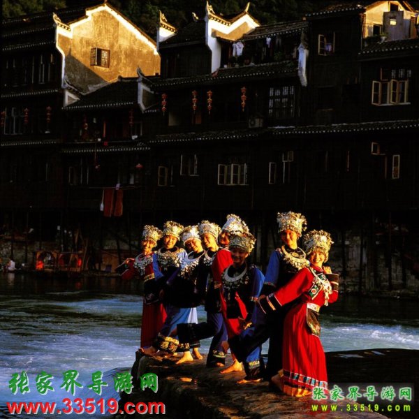 金鞭溪因流經(jīng)金鞭巖而得名,全長5710米,穿行于絕壁奇峰之間,溪谷有繁茂的植被,溪水四季清澈,被稱為“山水畫廊”、“人間仙境”。有詩贊曰:“清清流水青青山,山如畫屏人如仙,仙人若在畫中走,一步一望一重天”。途中你會(huì)看到點(diǎn)歌臺,那里有土家姑娘時(shí)刻準(zhǔn)備為游人唱民族歌曲,只要付十元錢她們就會(huì)為你引吭高歌,當(dāng)然,如果你不想花這個(gè)錢,也可以在一邊聽聽別人點(diǎn)的歌,聽完后走人。